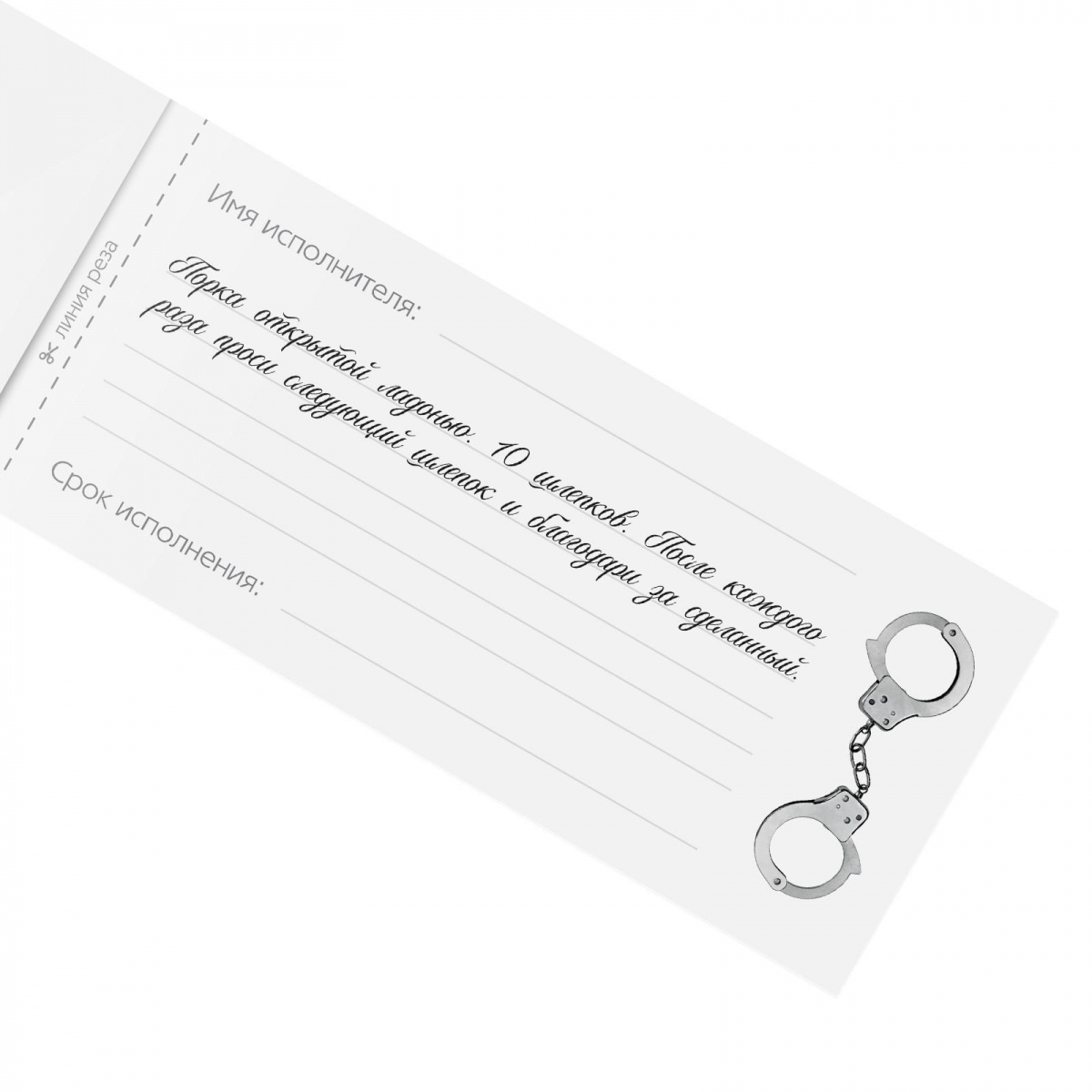 Горячие купоны для двоих. Купоны «Накажи меня» — это идеальный инструмент управления вашим партнёром. Выписывайте чеки и наслаждайтесь воплощением ваших тайных фантазий вместе! Как использовать купоны? Изучите книжку и выберите задания, которые понравились вам больше всего. На каждом купоне необходимо указать имя исполнителя и срок исполнения наказания. Осталось только вручить чек и ждать. Внутри вы найдёте: 20 чеков. Дарите друг другу наслаждение! В комплекте: 20 купонов.