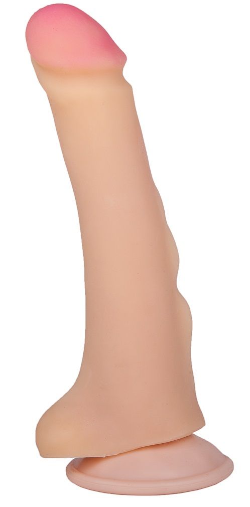 Телесный фаллоимитатор на присоске со стимулирующими шишечками.